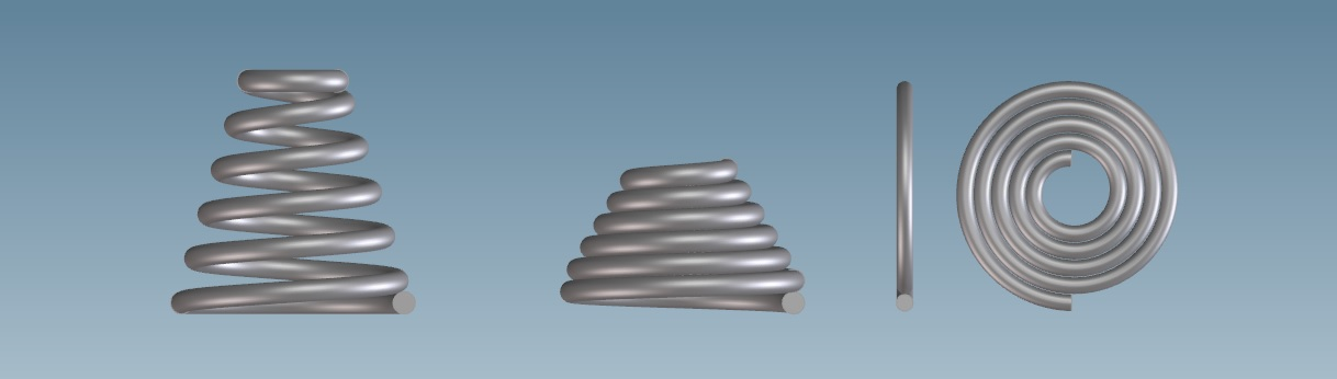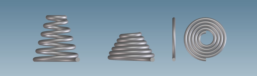 Diese Kegeldruckfedern aus runden Drähten werden in Richtung Federachse beansprucht. Eine lineare Kennlinie wird gegebenenfalls durch eine unterschiedliche Steigung der federnden Windungen erreicht.
