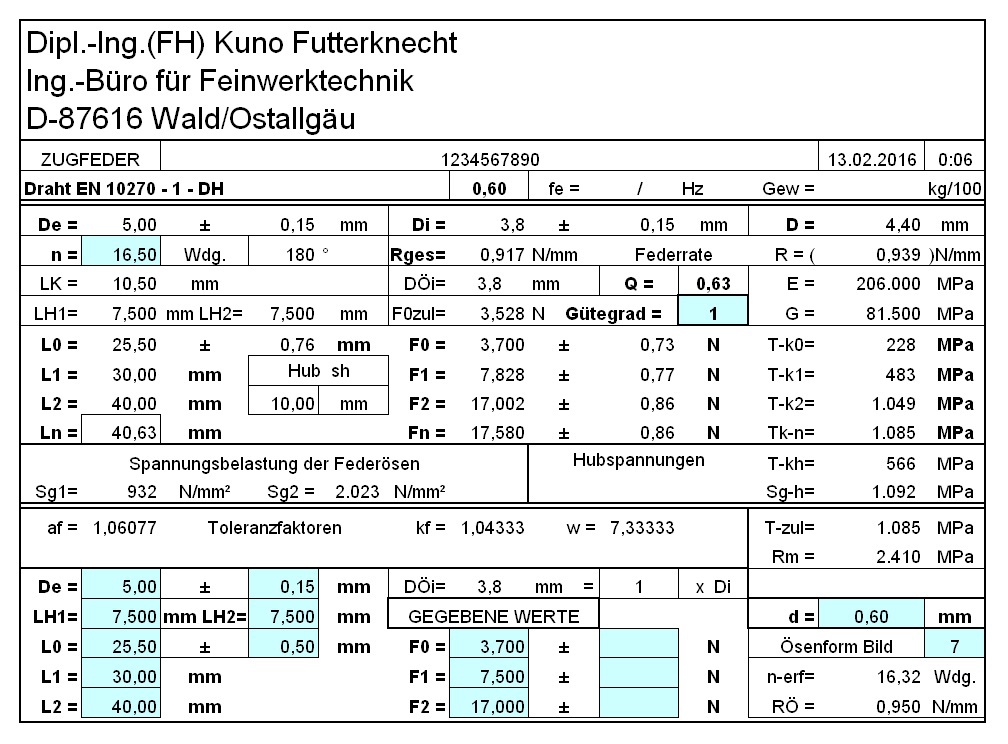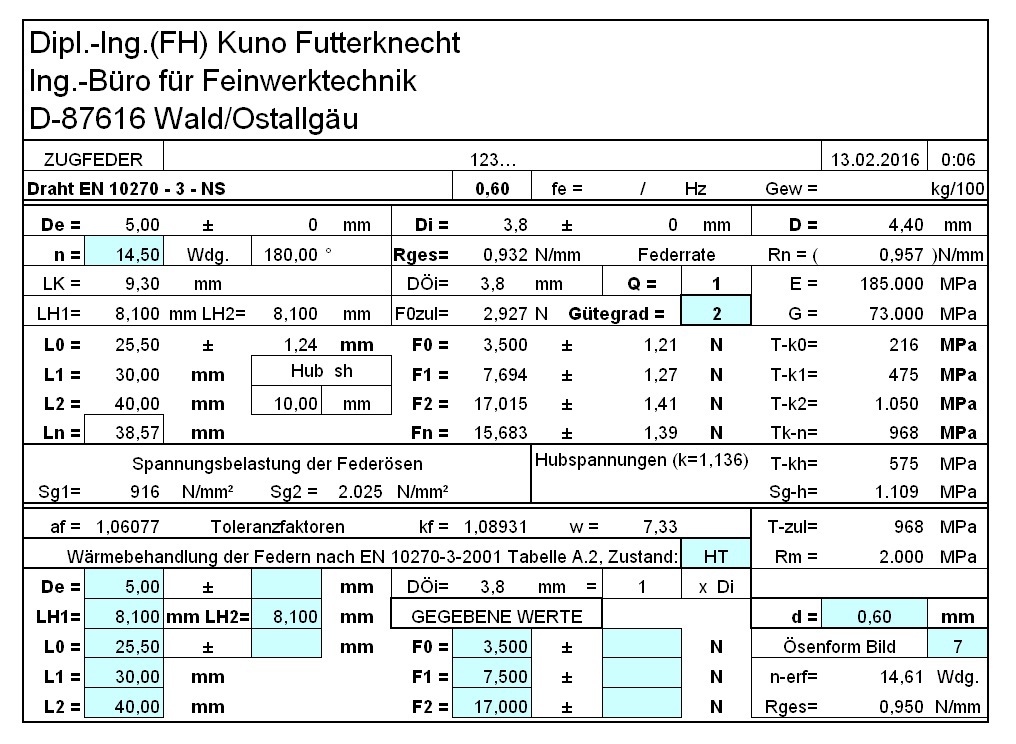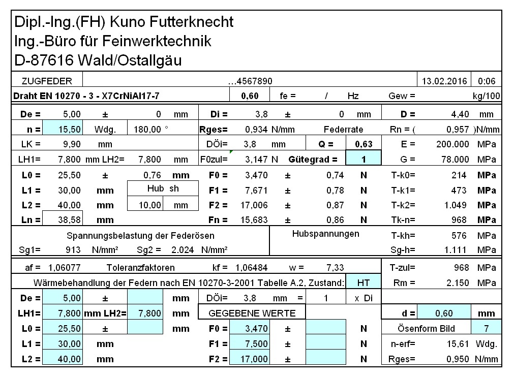 gemäß DIN EN 13906-2 (D) für die Berechnung und Konstruktion von kaltgeformten, zylinderförmigen Schraubenfedern - Zugfedern -